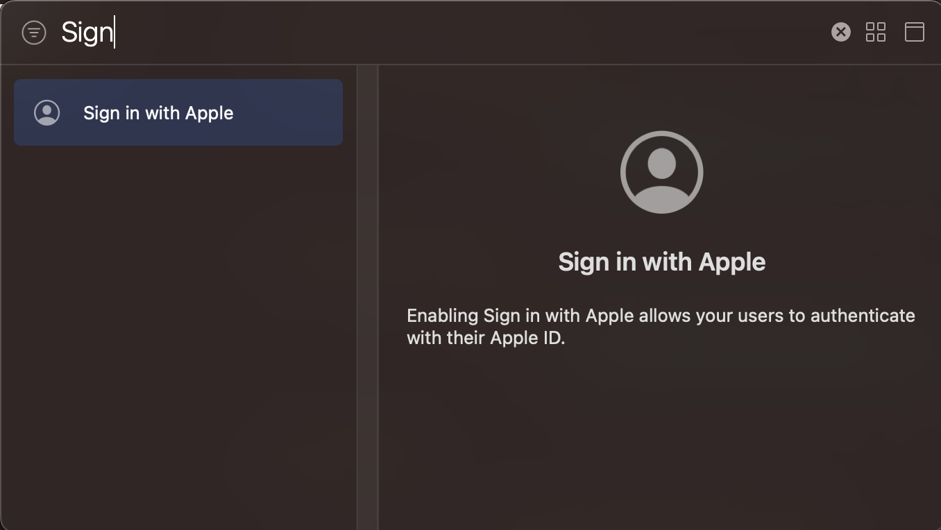 `+` 를 눌러서 Sign In with Apple를 추가합니다.