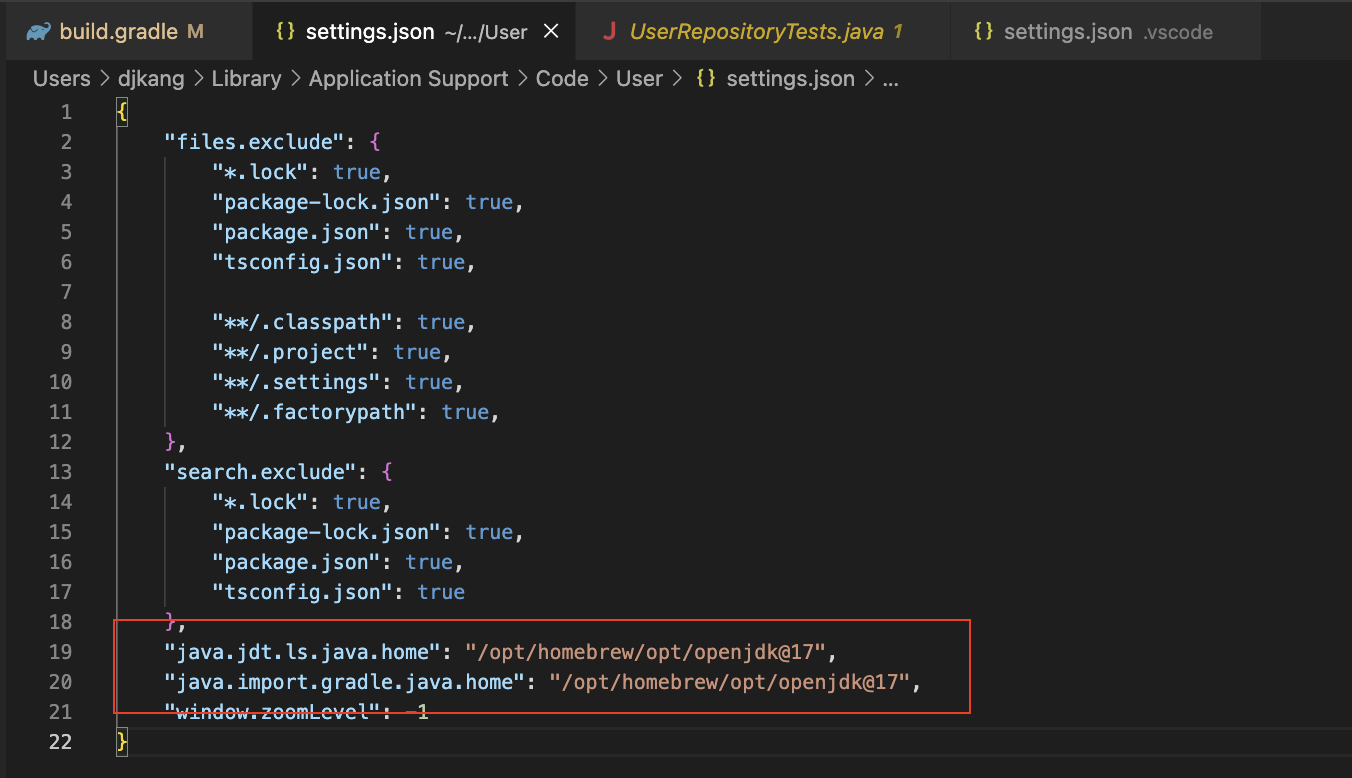 "java.jdt.ls.java.home": "/opt/homebrew/opt/openjdk@17", "java.import.gradle.java.home": "/opt/homebrew/opt/openjdk@17",