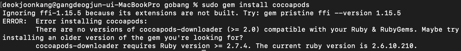 $ sudo gem install cocoapods개발중인 프로젝트에서 라이브러리 업데이트