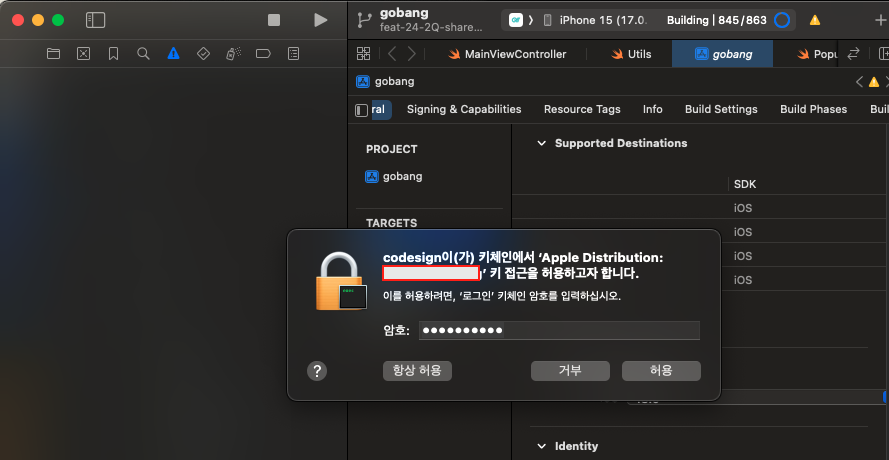 Xcode에서 archive 키체인 로그인 오류Language/Flutter,iOS,AOS 2024. 7. 1. 10:42
