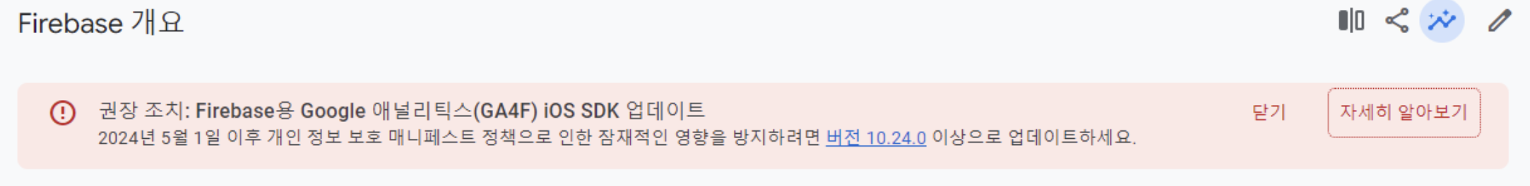 구글 플레이 콘솔에 파이어 베이스 권장 조치 메세지를 받게되었다. 간단하지만 기록은 하자.