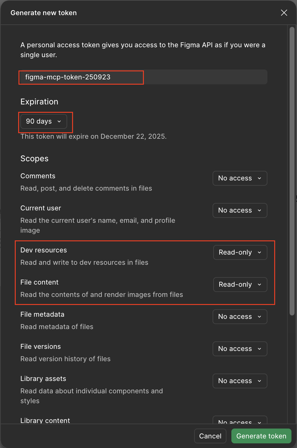 Generate new token 2. Cursor에 Framelink MCP 추가