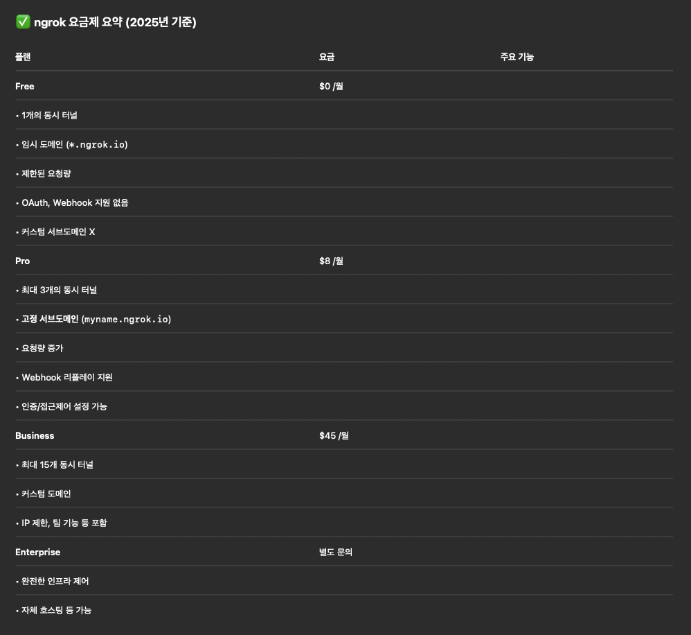 - ngrok http 3000등으로 로컬 서버 외부 노출 가능