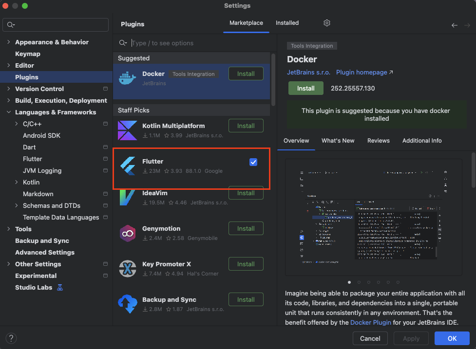- Flutter (Flutter 플러그인을 설치하면 Dart 플러그인도 자동으로 함께 설치됨)