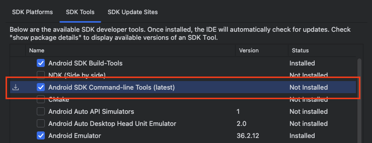 SDK Tools -> Android SDK Command-line Tools (latest) - 설치 5.3. Google 라이선스 동의