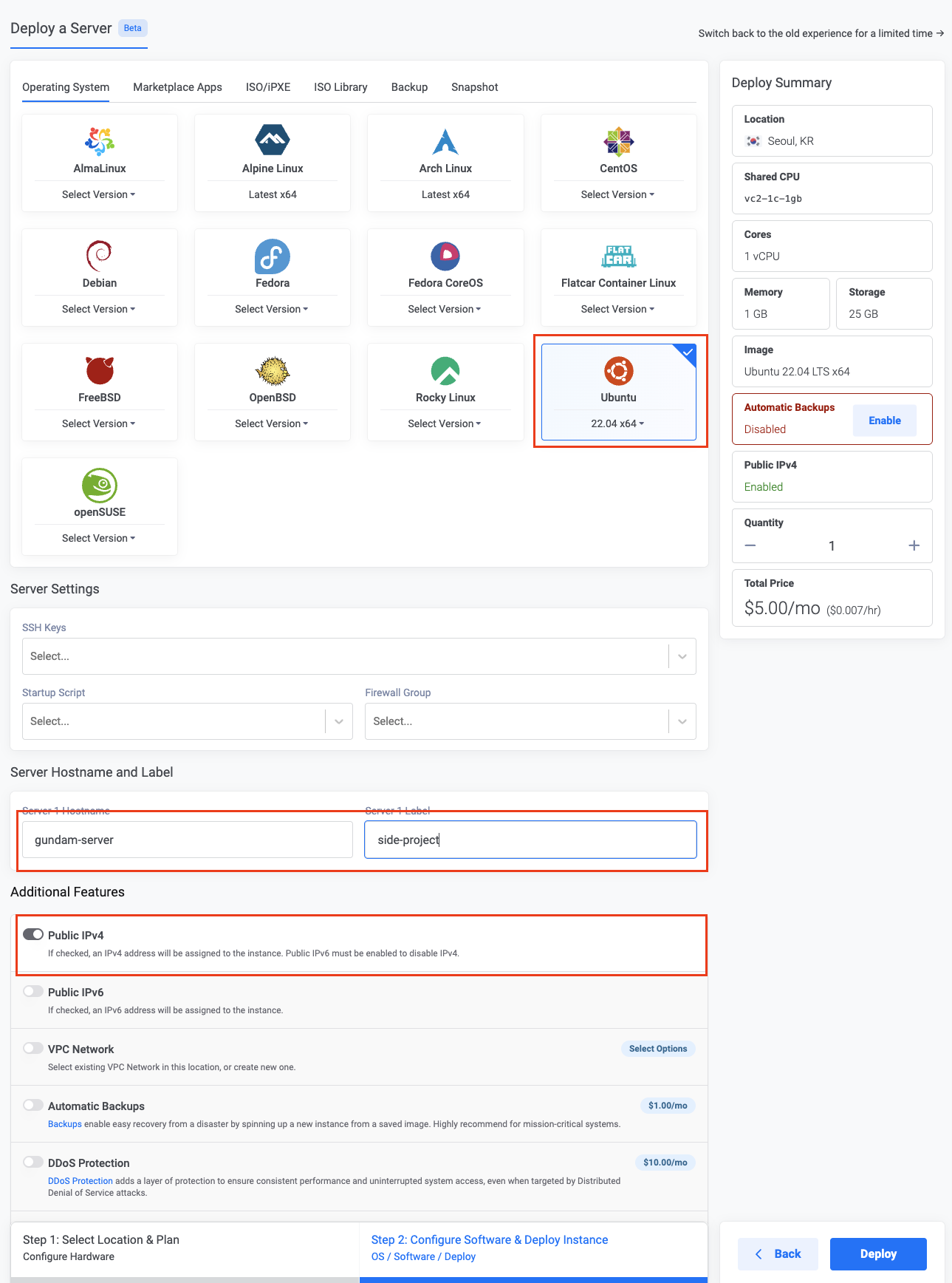 Vultr 대시보드에서 생성된 서버 클릭 -> 아래 2개 확인