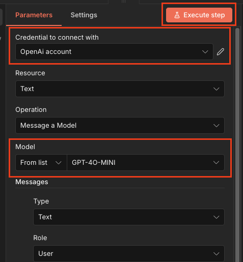 Open Ai -> Message a model - Open API 키 등록